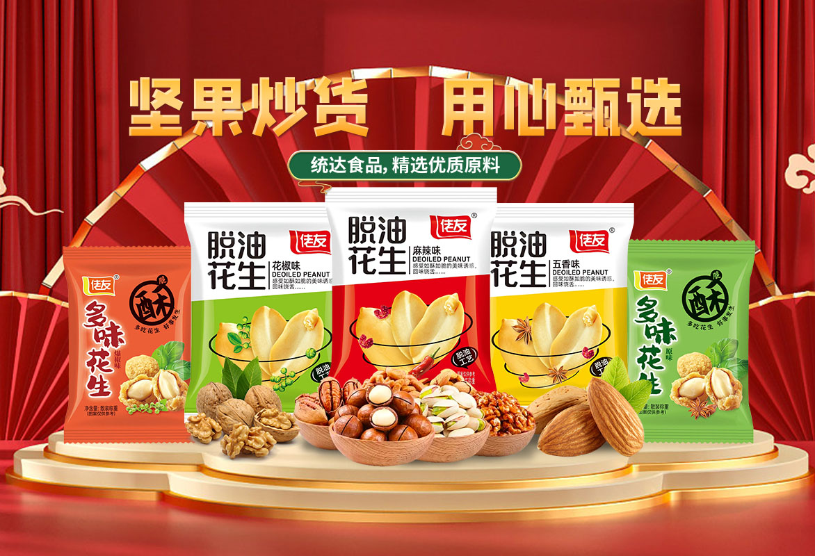 洛陽市統達食品有限公司創(chuàng)建于2013年,坐落于風景秀麗的嵩山腳下,東依省會鄭州、隴海、焦枝兩大鐵路在此交匯,西連高速,洛界高速,縱橫東西南北,207國道,交通便利。當地環(huán)境優(yōu)美。經濟繁榮昌盛,實為興業(yè)辦企,鴻運福順的好地方。少林寺,白馬寺,龍門石窟,玄奘故里等名勝古跡星羅棋布,近在咫尺,盡展千年華夏文明?! ∥覐S是一家集生產,研制,銷售為一體的食品加工企業(yè),總投資1500萬元,廠房占地面積5000平方米,員工100余人,其中技術人員20余人,年加工能力達1500余噸。公司以堅果炒貨為主導,自主三大品牌:統達牌、紅仁館牌、佬友牌和授權品牌速達,主要產品有酒鬼花生系列,麻辣花生系列,香辣酥系列,果仁裹粉類系列,怪味胡豆系列,蠶豆、青豆系列等多個品類。產品暢銷全國各地,深受用戶好評。產品選自上等原料經多次精選而制,秉承濃郁的特色風味,保留其原材料的營養(yǎng)和原汁原味,富含不飽和脂肪酸和人體必需的氨基酸和鋅元素,不含膽固醇,黃曲霉素,不添加防腐劑、著色劑;具有濃郁獨特的香味,是真正的“從土地到餐桌”的健康食品。產品特點:色澤金黃,顆粒飽滿,然后經多種工藝加精良的天然配料精制而成,鎖生產出來的產品既保持著產品的獨到的口味,又不失產品天然的營養(yǎng)成分,滋味純正,辣椒鮮紅食之麻,辣,香,酥,甜,口感獨特,食后滿口生香,欲罷不能。久食不厭,老少皆宜,居家旅游,佐食配茶,宴賓饋友之佳品,深受廣大顧客歡迎和贊揚。 我們將以精湛的工藝,科學的管理,嚴格的質量控制,優(yōu)異的品質保障,以誠信,創(chuàng)新,勤奮,求實的企業(yè)精神,立于強者之林,迎接新的挑戰(zhàn)。以飽滿的熱情迎接與你的合作?! ”竟尽耙再|量求生存,以誠信求發(fā)展”歡迎有志之士加入我們的團隊,攜手共創(chuàng)美好明天!